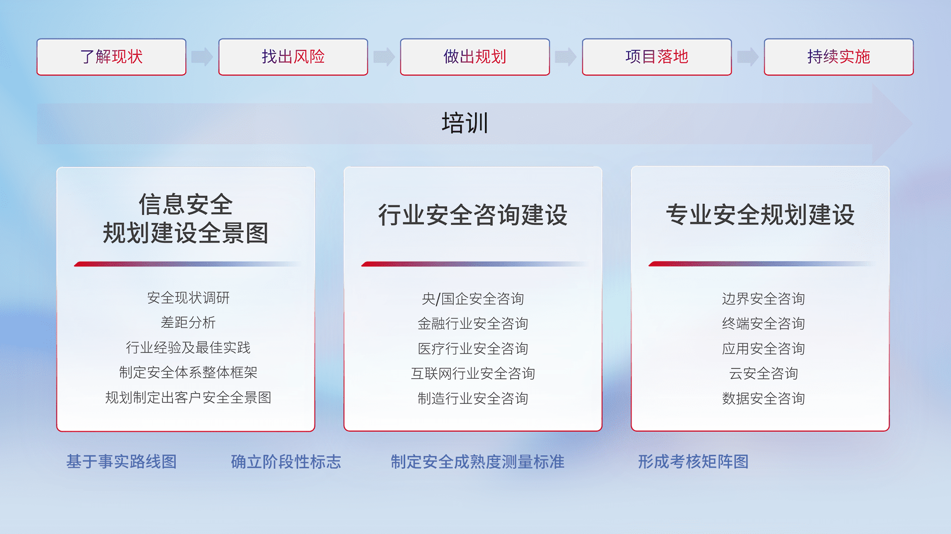 梳理客户信息安全现状调研、、、差距分析结果,,,,结合行业先进经验及最佳实践,,,,制订客户的信息安全管控体系总结架构,,最终形成一个完整的客户信息安全规划与建设的全景图。。